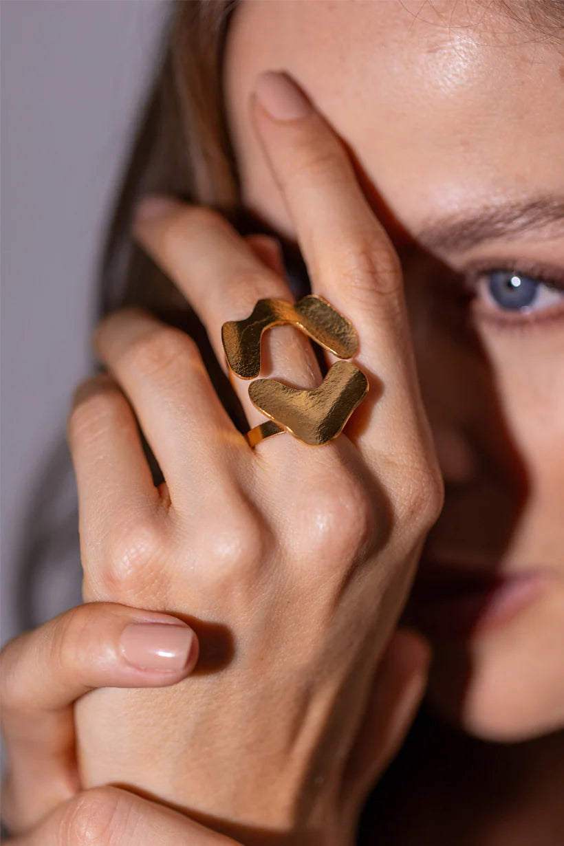 Un diseño versátil que captura la fuerza y el misterio del jaguar. Elaborado en bronce con baño de oro de 24 kilates, su forma ajustable lo convierte en un anillo cómodo y adaptable, mientras su acabado elegante y refinado lo hace perfecto para destacar en cualquier ocasión.