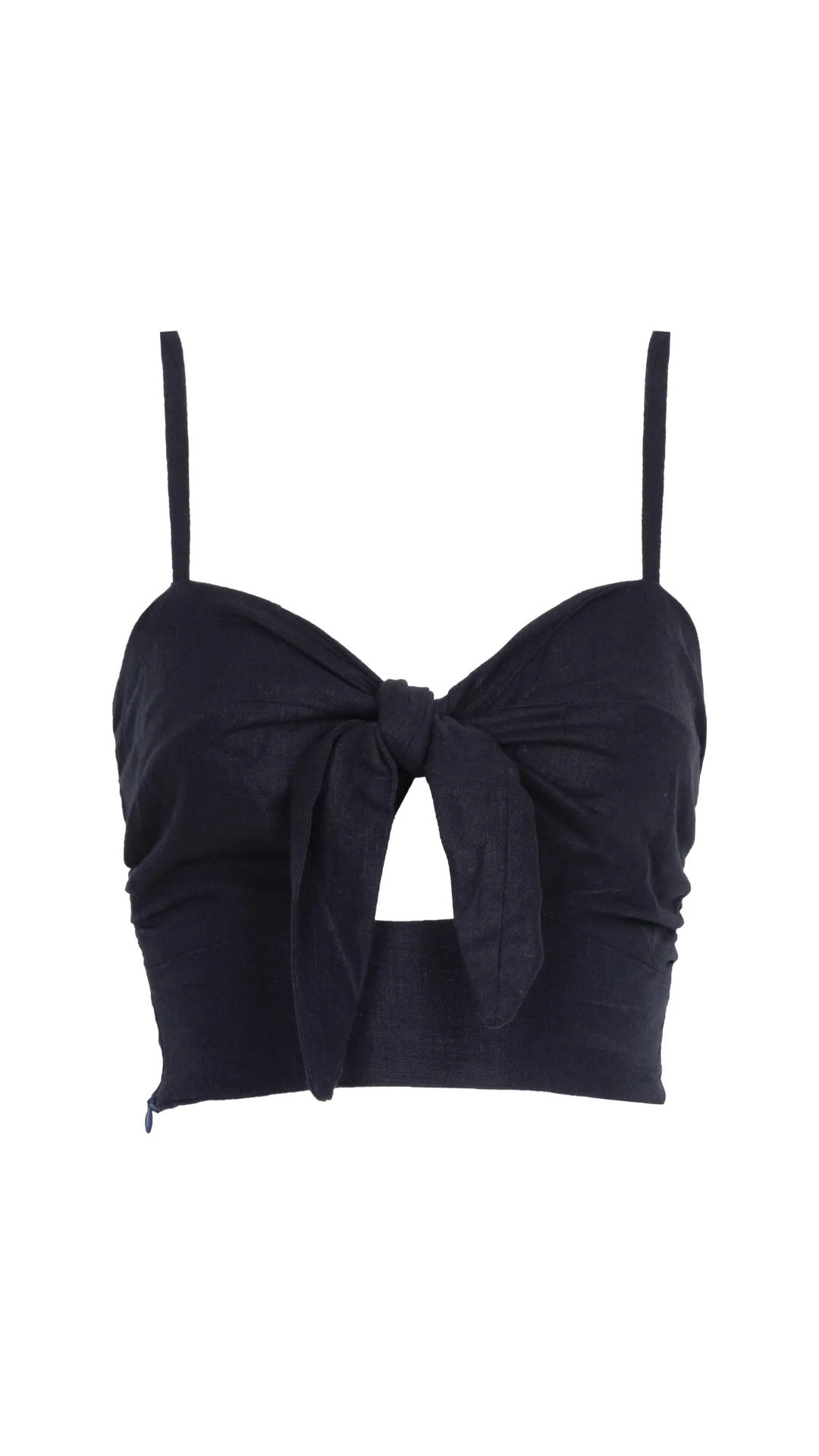 Crop top con amarre en el frente. Espalda ruchada. Tiras ajustables.