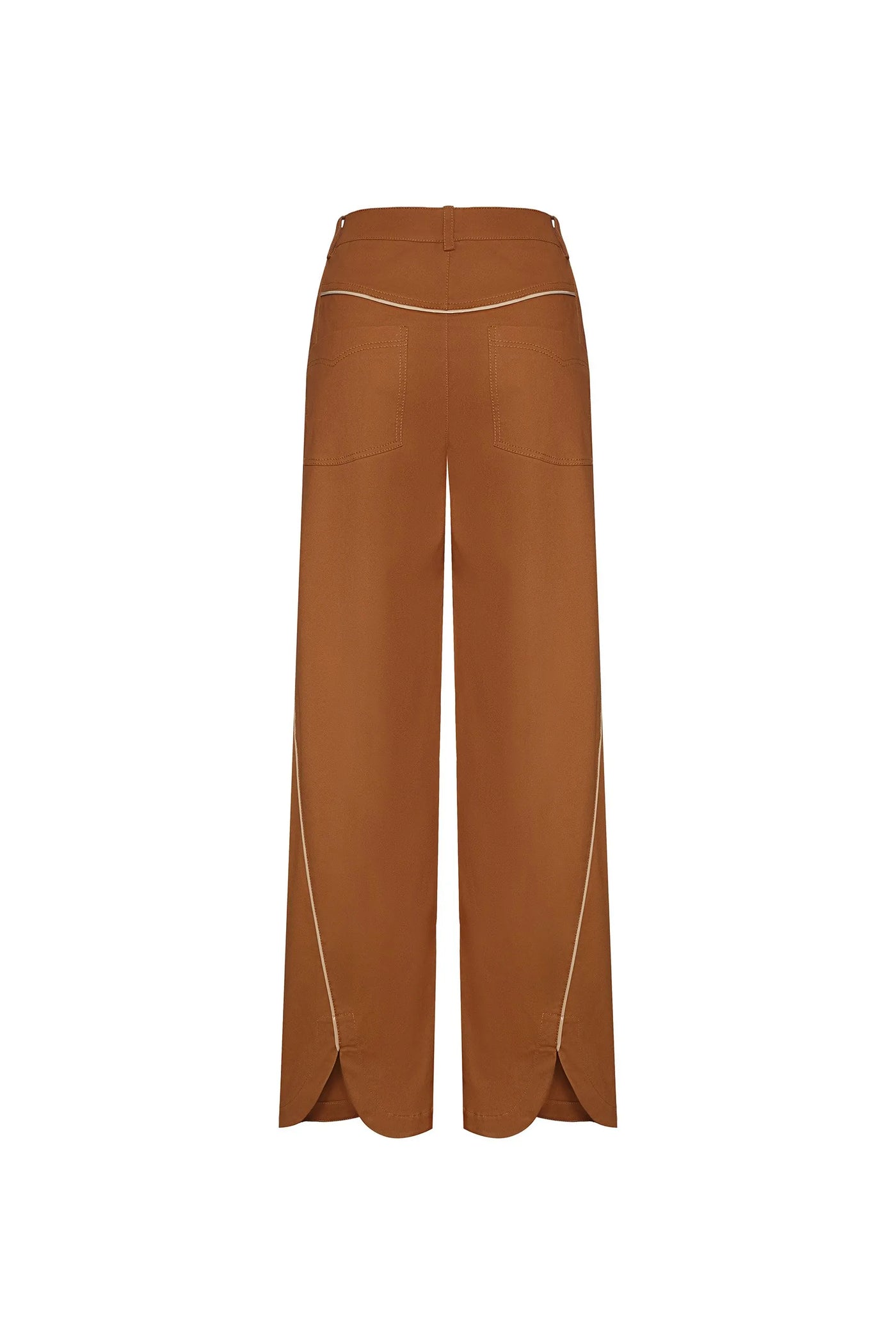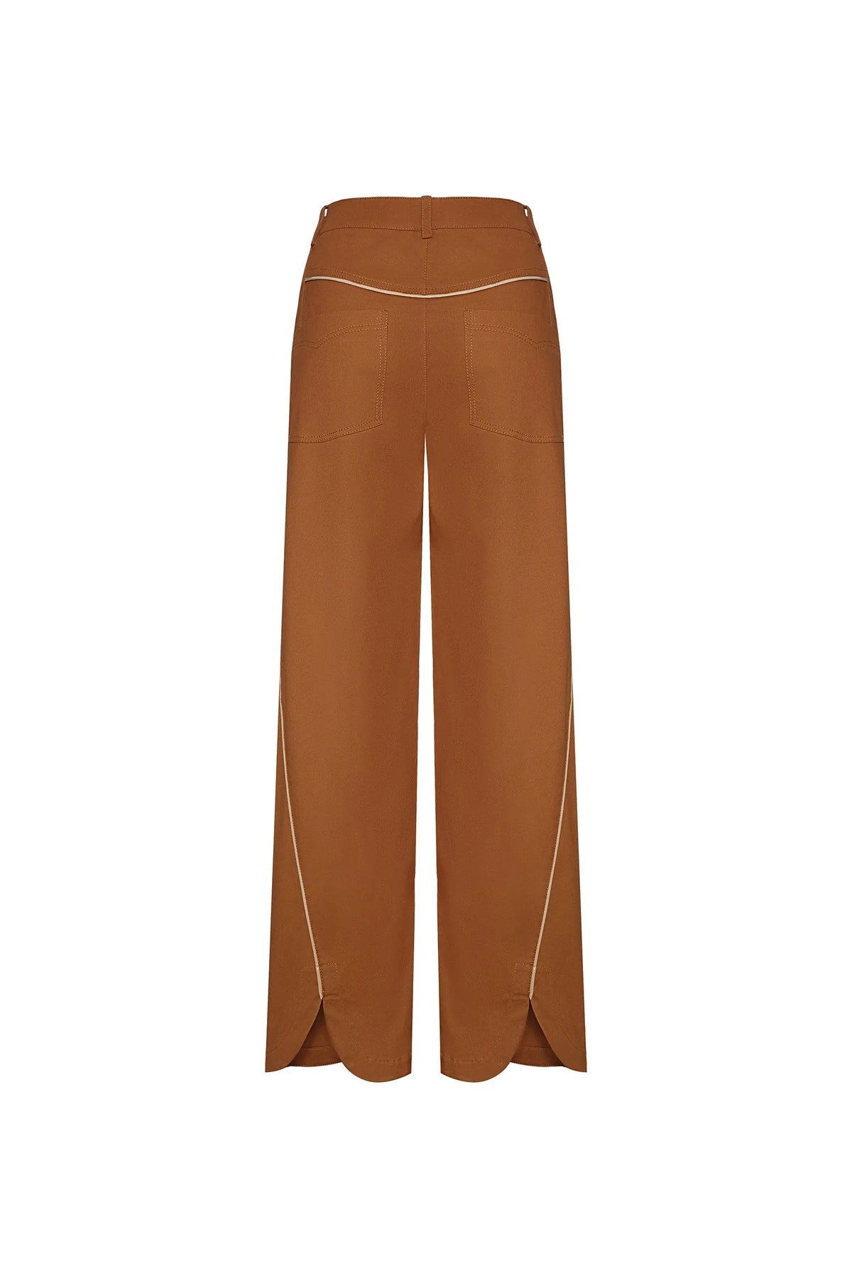 Pantalón de bota ancha y largo completo, corte a la cintura que estiliza la silueta. Incorpora prenses en la parte frontal. Cuenta con bolsillos laterales y bolsillos posteriores, combinando funcionalidad y estilo. Una prenda versátil que se adapta tanto a looks formales como casuales.