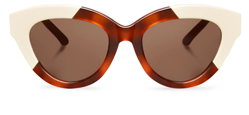 Una nueva montura cat-eye con líneas más suavizadas y un mayor peso en los extremos, que generan una forma ponible y dan lugar a unas gafas de sol muy favorecedoras y actuales.