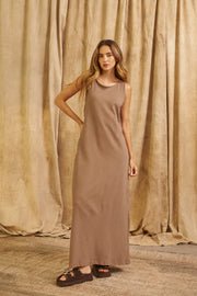Caracteristicas: Silueta recta y relajada. Largo hasta el tobillo. Espalda abierta con detalle y lazo ajustable. Cuello redondo y sisas amplias. Tela suave con caída natural.