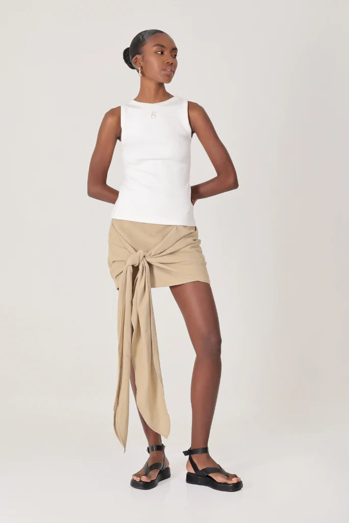 Nuestra mini skirt está hecha para esos días donde el sol es protagonista. Con un nudo al frente y sus tiras largas que caen, logra ese balance entre relajado y sexy. Su tela tipo tejida le da un aire 'beachy' y nuestro toque de elegancia relajada a un look que puede usarse desde un brunch hasta un bar sin mucho esfuerzo.