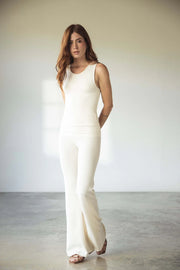 Este pantalón flaire en rib suave está diseñado para moldear tu figura con su pretina ancha que se adapta a tu cintura, creando una silueta femenina y elegante. La textura rib suave agrega un toque de interés visual, mientras que el corte flaire crea un efecto chill pero sofisticado. Perfecto para combinar con tops ligeros, sweaters o denim jackets; su diseño versátil y cómodo lo hace ideal tanto para un look diario como para una salida más formal.