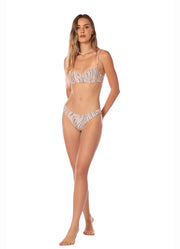 Bottom: El Charlotte Bottom Eternal Sands es un bikini tipo brief de cobertura cheeky diseñado para realzar y estilizar tu figura. Confeccionado en nuestro tejido texturizado característico con un exclusivo estampado de líneas onduladas, presenta un frente liso, recogido en la parte trasera y un corte alto en las piernas para alargar la silueta. Combínalo con el top Eternal Sands a juego para un look minimalista y sofisticado.